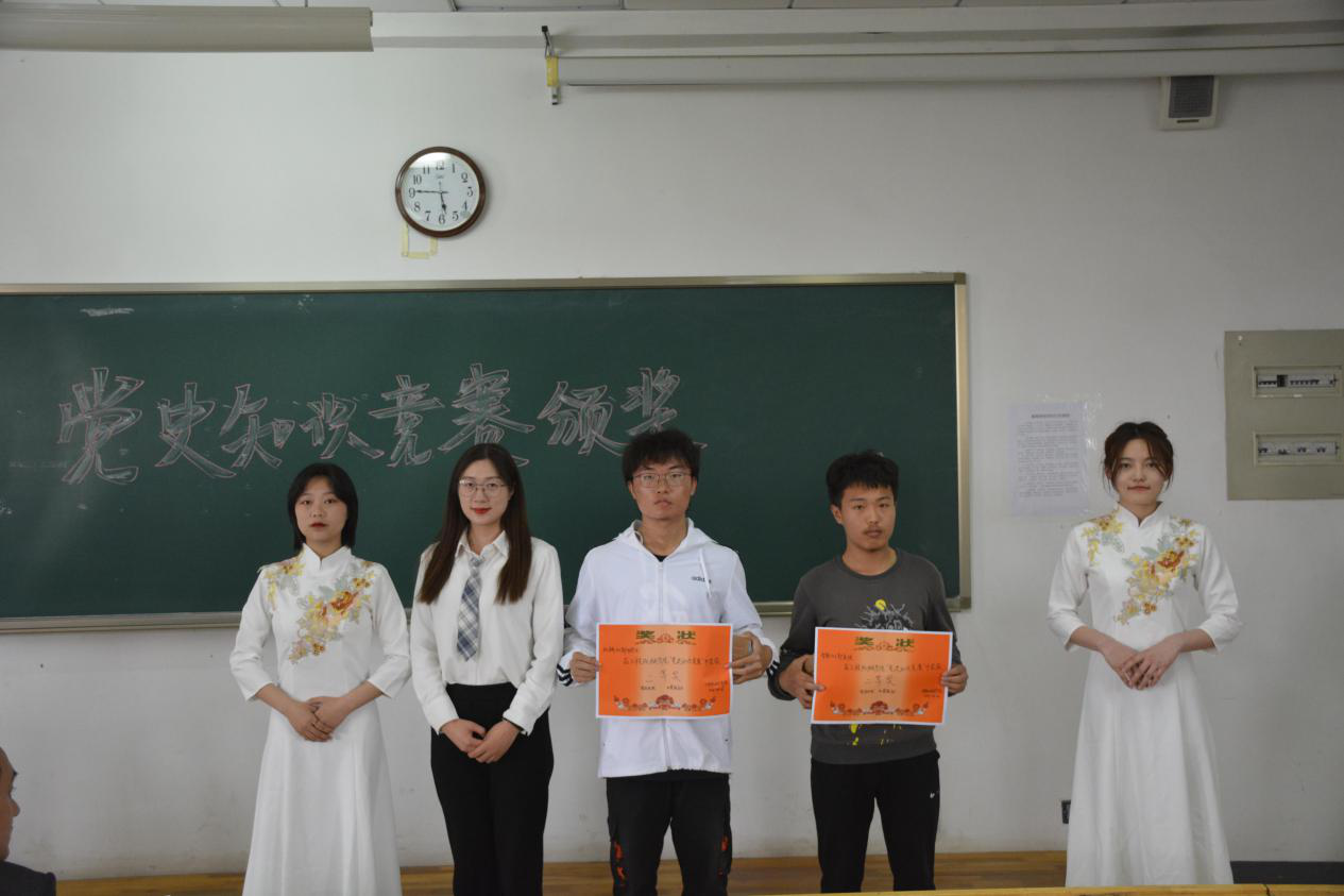 4月29日上午,我院在二号教学楼B座301教室举行“学好百年党史 赓续精神血脉——党史知识竞赛颁奖仪式”。此次比赛由我院社联部主办,我院分团委书记种灵子,辅导员王林清、玄路宁参加了颁奖仪式,此次活动由沈庚主持。