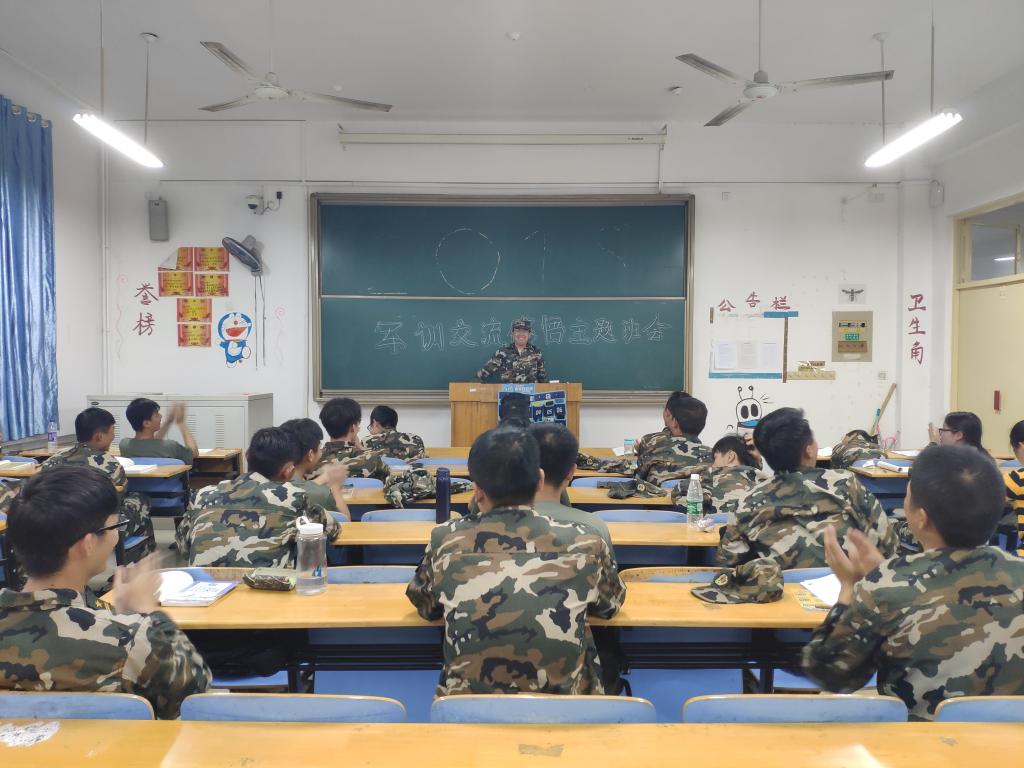 班会上,同学们讲述了自己在大学里的所见所闻,分享了自己入学以来的感受,发表了自己在军训过程中的感想。他们对大学生活充满了向往,对大学里的新鲜的事物充满了好奇。之后,老师还通过PPT向同学们展示了校园里各处优美的景色以及丰富多彩的校园活动,根据这些展示,同学们热烈地讨论了自己对未来大学生活的憧憬,大家各抒己见,现场气氛活跃。最后,由班主任对这次班会进行了总结。老师指出“军训是大学生的第一堂必修课,同学们在军训中磨练了意志,锻炼了体魄,希望同学们在接下来的专业课程学习中,充分发挥军训中养成的勤奋努力、勇攀高峰的精神,以积极向上的精神风貌面对精彩的大学生活。”