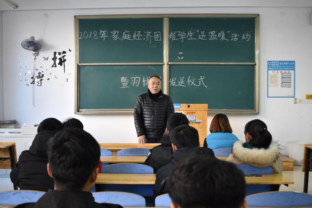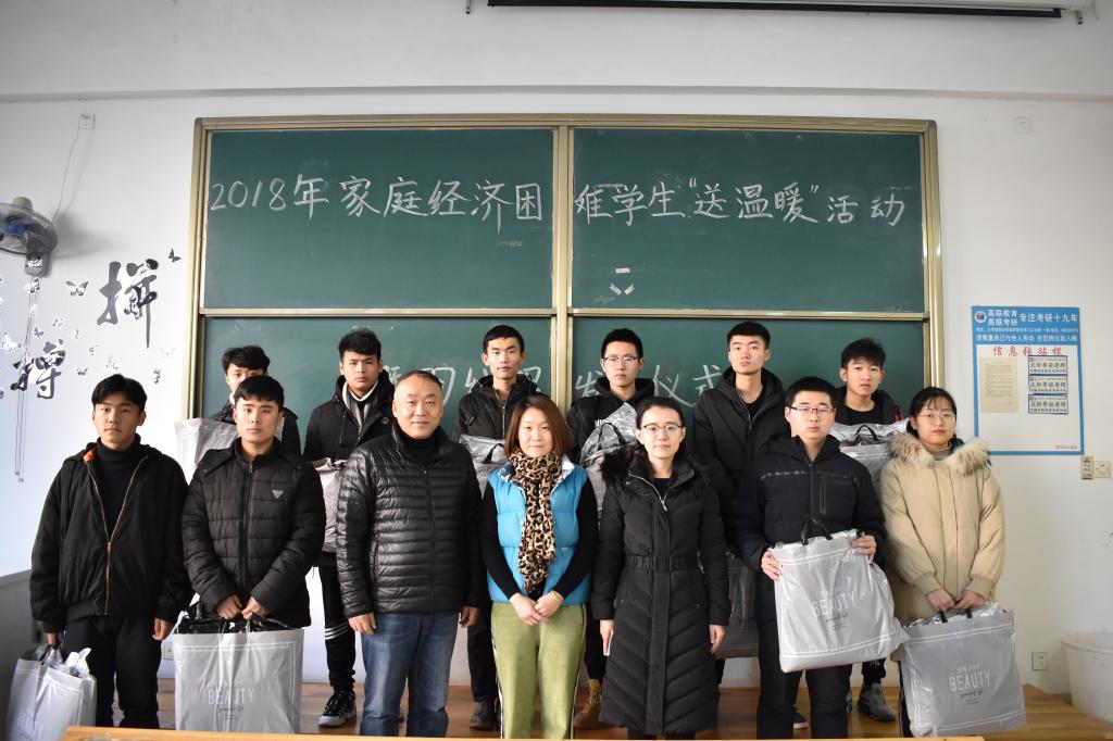 12月29日上午十点,我院2018年家庭经济困难学生“送温暖”活动暨羽绒服发送仪式在二号教学楼C座204教室举行。我院分党委书记单绍福、分党委副书记李筱倩出席此次活动,辅导员王一新老师主持。