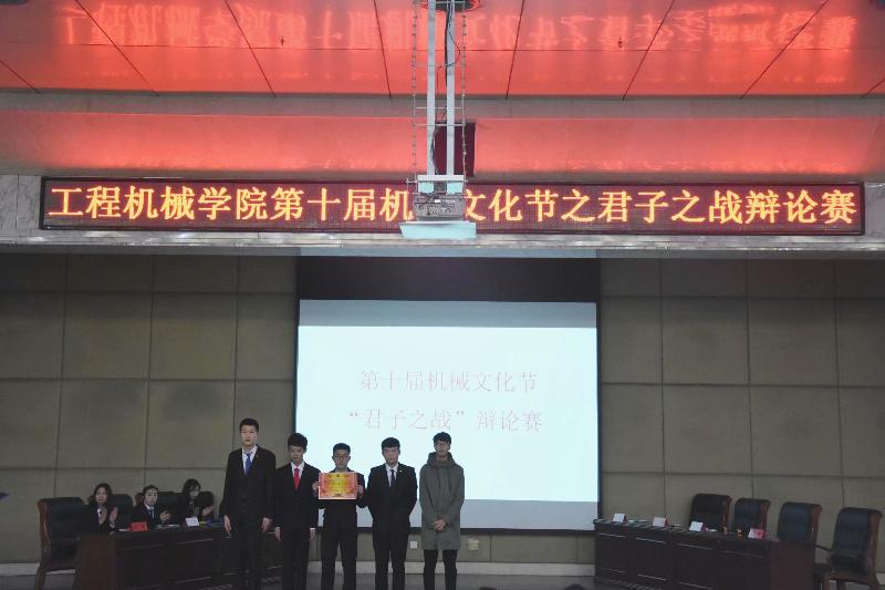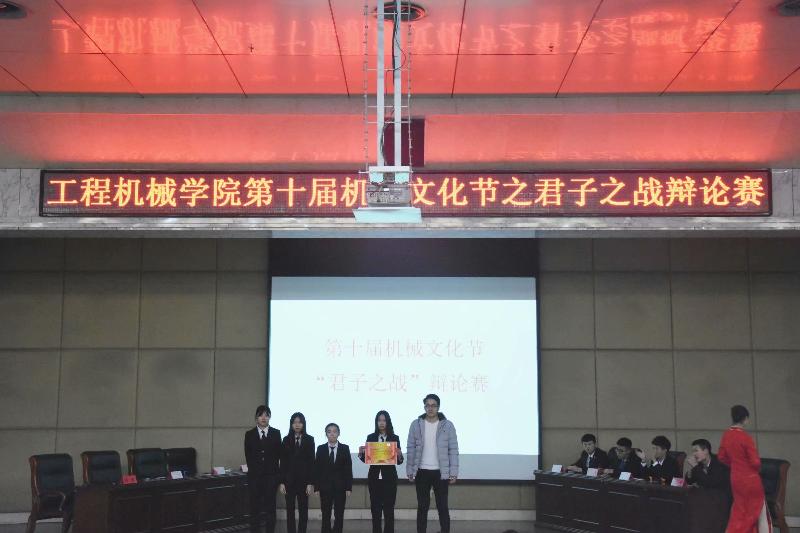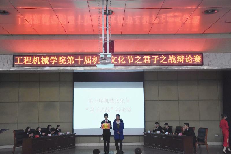 2018年12月1日下午,由工程机械学院学生会社团部主办的第十届机械文化节之君子之战辩论赛在报告厅顺利进行。