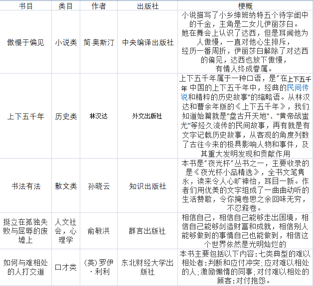 活动中,宣传部为同学们推荐精心筛选的书单,然后向同学们表示此次活动的目的及意义。我院学子积极参与其中,热情高涨。此次活动向我院学子推荐了历史类、社科类、口才类等题材的书目,开阔了同学们的视野,拓宽同学们的眼界,激发同学们的阅读兴趣,为后来的读书征文比赛做好铺垫。