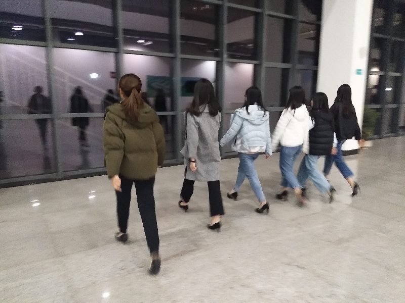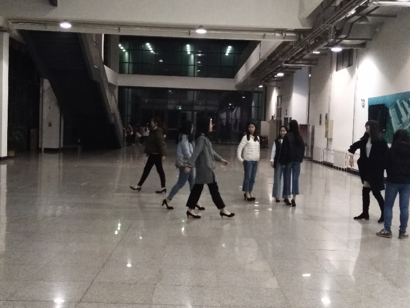 每天晚上礼仪队成员在张澳林、张硕的带领下按时进行礼仪训练。其中男生主要练习站姿和走姿,腰挺直,双手自然下垂,肩膀为“一”字,不歪斜;女生则换上高跟鞋,进行站姿训练,女生走时要文雅落落大方,身板挺直,走路自信,面带微笑。