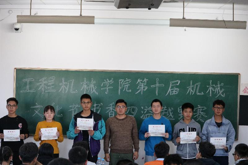 活动伊始,参赛选手在工作人员的指引下有秩序的进入到教室之中,抽取他们所对应书籍的题目。然后由主持人为参赛者们介绍比赛规则及注意事项。紧接着,在主持人的一声令下此次“书香四溢”越野赛正式开始。比赛过程中选手们严格按照比赛规则在校区内进行比赛。转眼之间,赛程已经接近尾声,各组参赛选手已经陆续回到了出发点并结束计时。最后,参赛选手们在现场工作人员的指引下回到教室观看节目并等待比赛结果。主持人宣布比赛结果并进行颁奖仪式。由学生会主席陈伟、宣传部部长宋春晓、社团部部长夏明分别为获得一等奖的老人与海一组,盛鑫源、吴照杰、曹耀栋;二等奖的老人与海十组,李斌、马佩龙、肖皓宇;三等奖的老人与海十七组,吴昱莹、石洁、徐蕾颁发奖品。