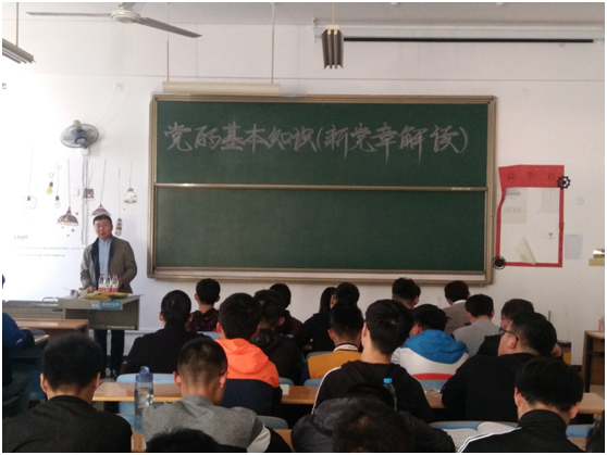 本次党课以“党的基本知识”为主题,闫淼书记对新党章向大家进行了详细的解读,并着重强调了入党意向、中国共产党人对自己信仰上的要求、新时代大学生的入党动机、习近平总书记提出的四个伟大、有正义信念与有追求的人加入党组织的原因和提倡大胆说出自己的信仰等六方面内容。闫淼书记谈到,党员以及入党积极分子应该做好表率,从道德与生活入手,开放眼界、关心社会,他希望在场的同学应当提高自身修养,积极向党组织靠拢。