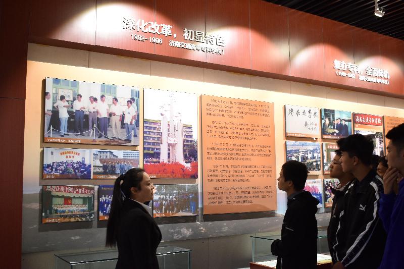 在滕昆老师和王一新老师的带领下,新生们井然有序地进入校史馆进行参观。校史馆讲解员积极、热情的引导新生们参观学习,新生们在校史馆内通过观看图文并茂的展板,直观、生动地了解了学校六十余年的沧桑和历史变革,感受到了历代交院人“爱校”“敬业”“务实”“创新”的精神,增进了学子们爱校荣校的情怀。