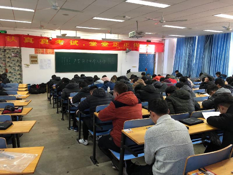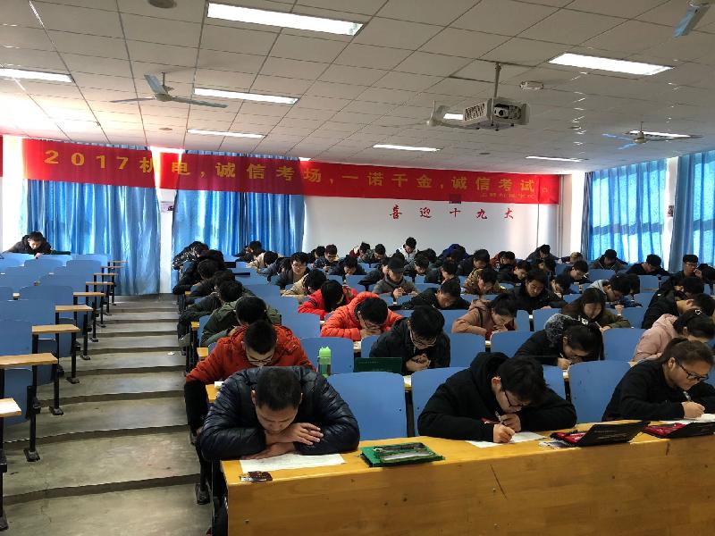 为深入贯彻落实党的十九大精神,积极培育和践行社会主义核心价值观,培养学生诚信观念,加强学风建设,在本学期末考试中,我院2017级机械电子工程专业在全校范围内申请了无人监考的“诚信考场”,并取得了圆满成功。