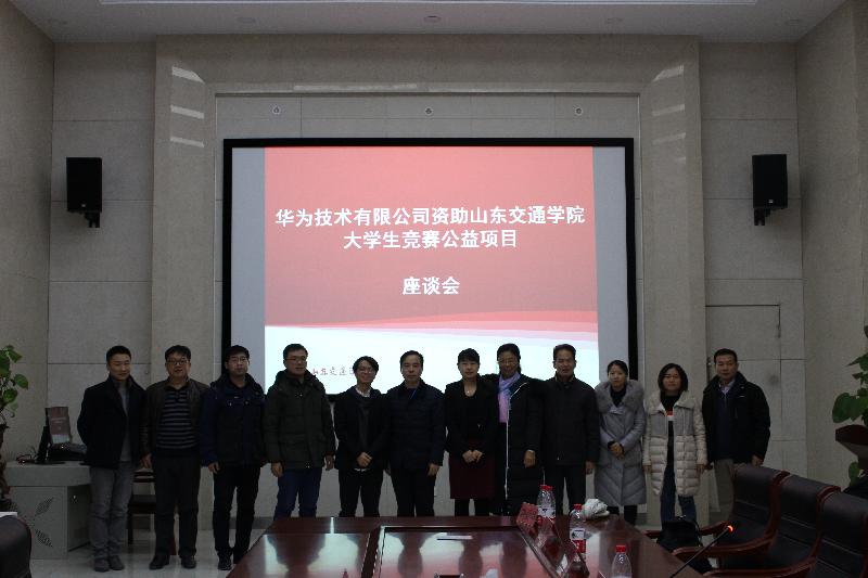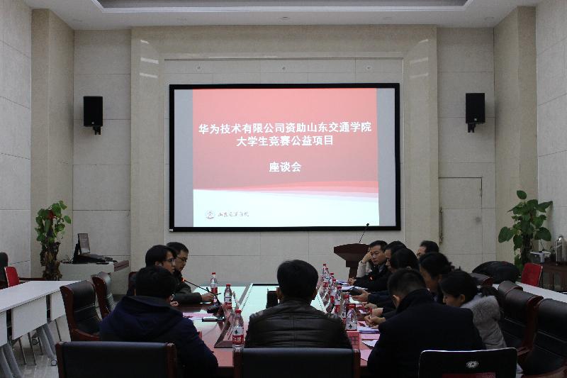 1月10日,华为技术有限公司资助山东交通学院大学生竞赛公益项目座谈会在工程中心A101会议室召开。华为公司项目经理吴振挺,工程机械学院副院长吴承格、学院分党委副书记周颜玲以及受资助的各大学生科技竞赛项目负责老师共同出席了会议。
