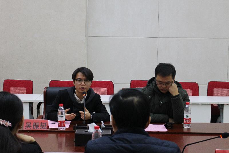 会议伊始,吴承格致辞表达了对吴经理一行来我校座谈的欢迎,对华为公司资助我校各项学生竞赛这一公益之举的感谢。随后,周颜玲作为校方代表,介绍了项目开展进度、学生参与情况等。然后,吴振挺介绍了大学生竞赛公益项目发起的背景,希望通过竞赛资助的形式,帮助学校提升学术类竞赛水平、增强学生的科研兴趣、传播公益正能量,鼓励青年积极奋斗,创造个人价值。最后,各竞赛负责老师介绍了各竞赛的基本情况,双方共同就项目过程中遇到的诸如奖项设置、项目展示、资金使用规范等操作细节等问题进行了深入交流和热烈讨论。