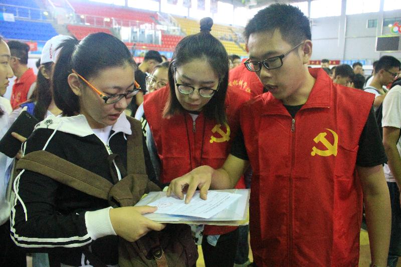 阴晴不定的九月的天气虽然令人却步,但依然阻挡不了党员的热情。他们主动为新生讲解报到流程,并对新生家长提出的问题耐心详细的回答,也博得家长和学生对我院的肯定。新生报到过后,学生党员们也帮新生提行李,并引导同学们领取被褥,不断为大家介绍沿路我校的风景、建筑,使得新生进一步了解学校。党员志愿服务团队不辞辛苦,时刻准备着为新生的需求伸出援手,他们的举动给初入大学的学子带来了温暖。