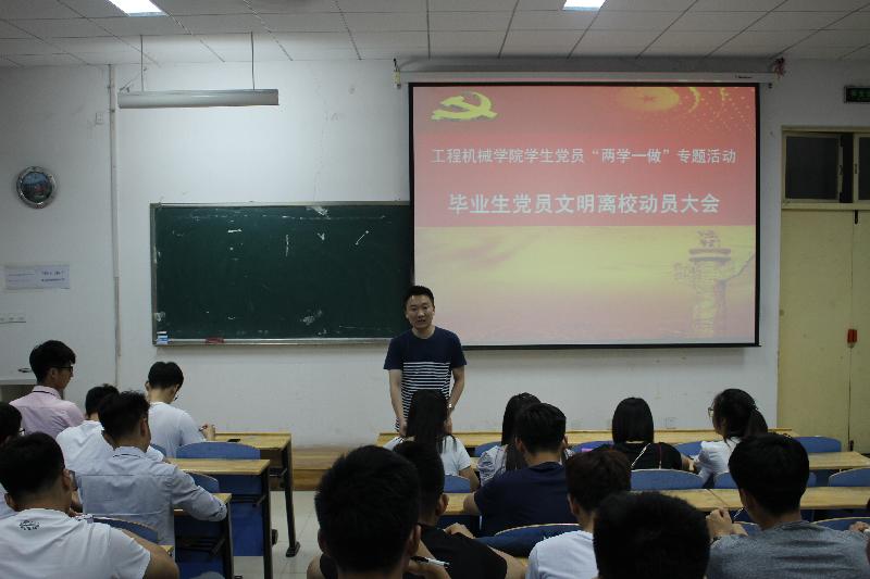 6月12日15时,我院毕业生党员文明离校动员大会在2C203隆重召开,辅导员宁兴旺及2017届全体毕业生党员参加了此次大会,大会由宁兴旺主持。