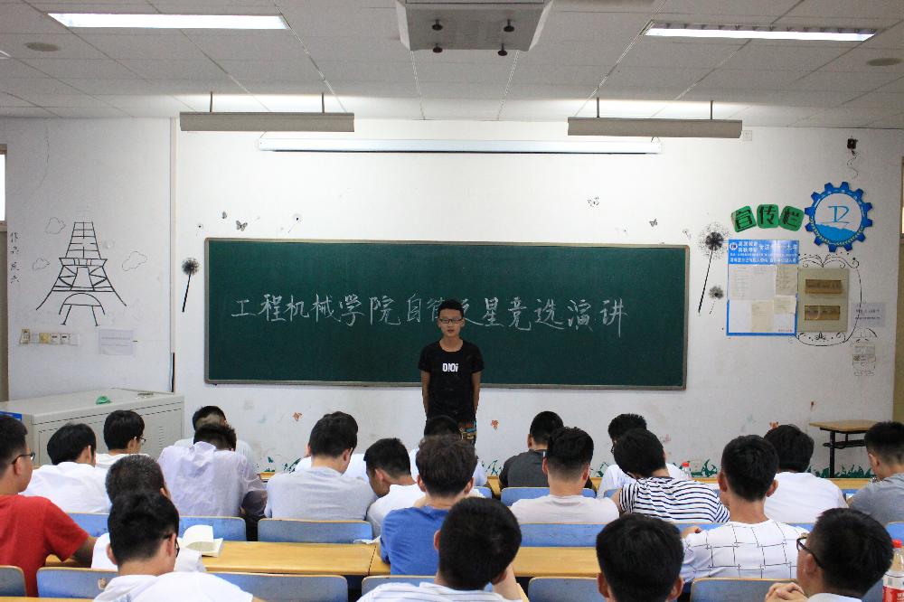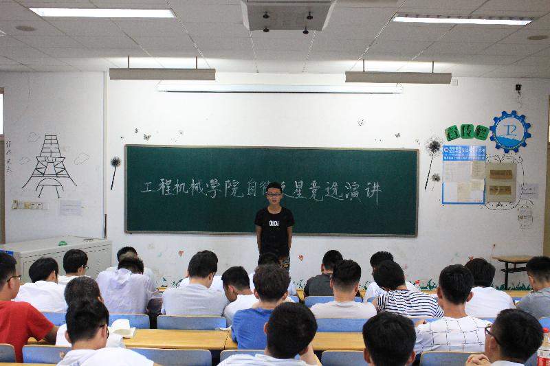 本次评选本着公平、公正的原则在15位选手中进行了评选。首先是自律委员会张鹏程简述了何为自律之星,评选自律之星的标准等等,然后是选手们上台演讲,阐述自己竞选的优势以及对自律之星的认识与理解。选手们的出色演讲赢得了观众的热烈掌声,评委们也打出了公正的分数。