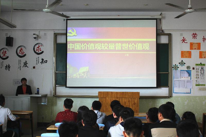本次党课以“中国价值观较量普世价值观”为主题,周书记指出,西方“普世价值”不具备现实土壤,具有抽象性、虚幻性甚至是殖民性、侵略性,是一个虚假概念,在实际生活中并不存在,不适合中国的国情。而我国现在实行的价值观是适合当前中国社会的,我们必须坚持贯彻落实中国特色社会主义价值观。作为一名入党积极分子应按照社会主义核心价值观的基本要求,积极融入社会生活,在实践中感知它、领悟它。同时还要起好带头作用,带动身边的同学们弘扬社会主义价值观。要注意把我们所提倡的与人们日常生活紧密联系起来,在落细、落小、落实上下功夫。