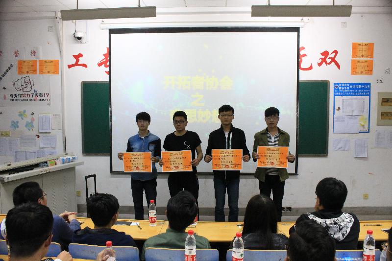 4月18日下午6:30,我院在1B302教室举办“奇思妙想”比赛,我院邀请船舶与轮机工程学院、经济与管理学院、轨道交通学院及艺术与设计学院的科技部负责人担任此次比赛的评委。