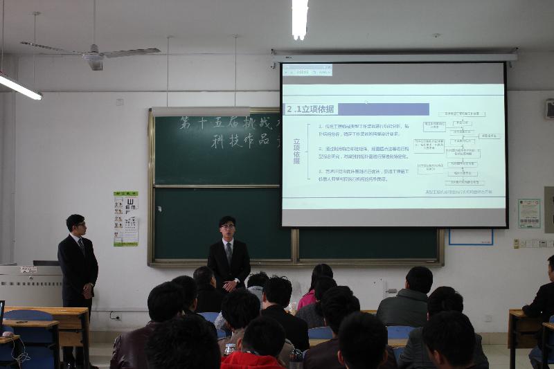 本次校赛公开答辩我院共有六组队伍进入到决赛,其中包含科技发明制作以及社科类社会实践报告。答辩开始,我院选手沉着冷静,从容不迫,深入浅出地向评委老师展现了他们的参赛作品。还通过图片、动画、视频的形式详细的介绍了作品的创作背景、创新点以及发展前景。展现了我院学子的优良风采。评委老师们认真聆听了选手们的介绍,从作品制作背景以及实际价值等方面对选手们进行了提问,并提出了宝贵意见。