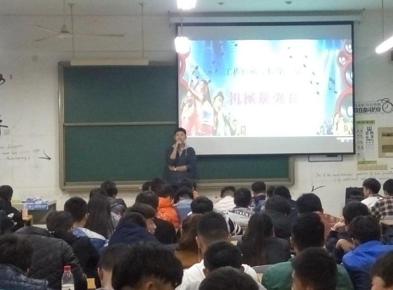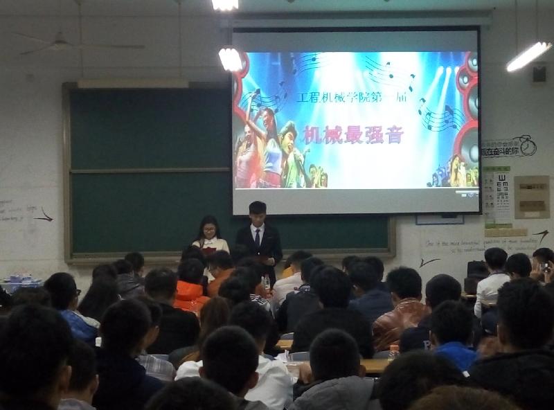 为了提高我院的文艺水平,展现学生风采,彰显当代大学生的精神风貌。11月20日18:30,我院第一届机械最强音决赛在1B503隆重举行。我院邀请大学生艺术团声乐部部长李会等人担任本次比赛的评委。