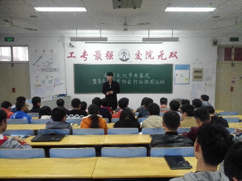 11月20日下午3时,我院在1B302举办青年志愿者协会美化校园活动暨社团文化节开幕式,我院学生会社团部臧洪基、青年志愿者协会会长于家瑞等各社团会长及社团代表60余人出席了此次开幕式,开幕式由我院学生会社团部岳照轩主持。