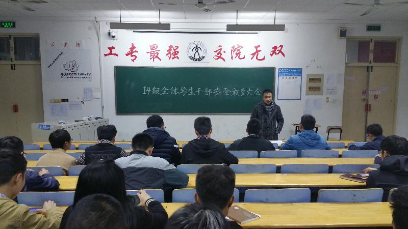 为建设更加舒适的宿舍环境,促进我院学子的健康成长,10月31日,我院2014级学生干部安全教育大会在1B302教室召开,本次大会由辅导员滕昆老师主持。