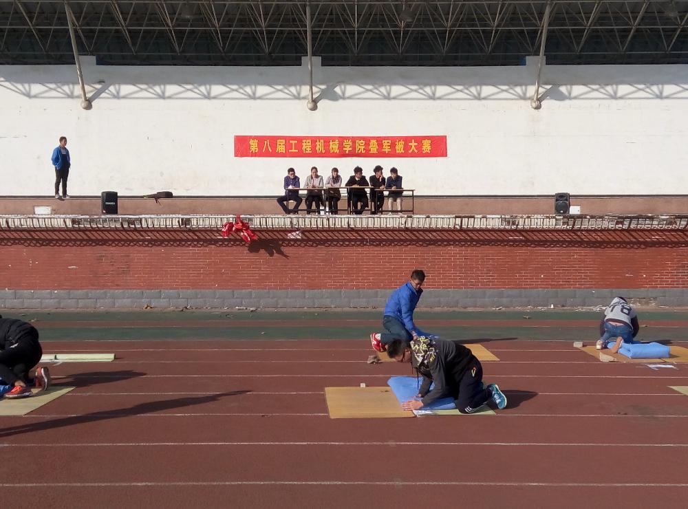 10月30日8:30,我院第八届叠军被大赛在长清校区体育场拉开帷幕,我院学生会卫生部副部长崔智等人担任比赛评委。
