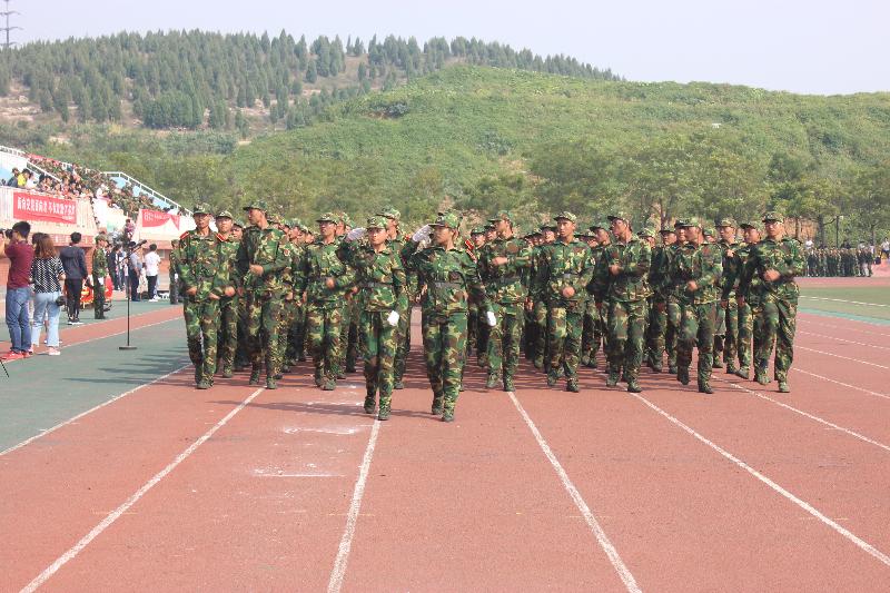 大会在雄壮的国歌声中拉开了序幕。各学院军训方队踏着《解放军进行曲》的激昂旋律,按顺序依次通过主席台进行分列式汇报表演,接受学校各级领导和部队领导的检阅。他们以威武的气势、昂扬的斗志、雄壮的口号、整齐的步伐,赢得了全场热烈的掌声,充分展示了我校2016级新生的军训成果和奋发向上的精神风貌。