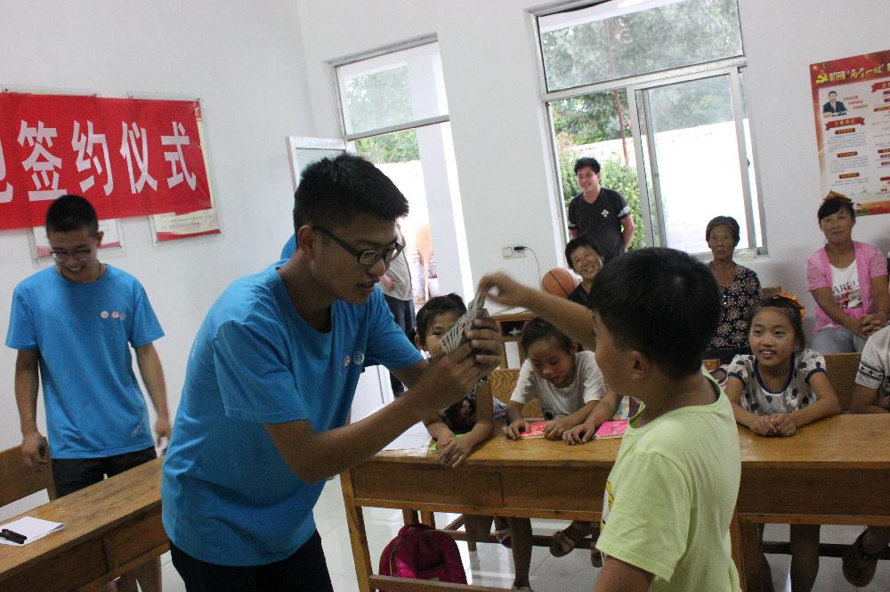 主持人的先导词拉开了文艺汇演的序幕,主持人宣布晚会开始后由左主任致辞,他对我院爱心服务队的到来表示了衷心的感谢,并对各村村民的积极协助表达了赞扬。接着,我院爱心服务队与当地孩子们带来了魔术表演、歌曲演唱等精彩的表演,这些精彩的表演不断地把晚会推上高潮,全场掌声不断。