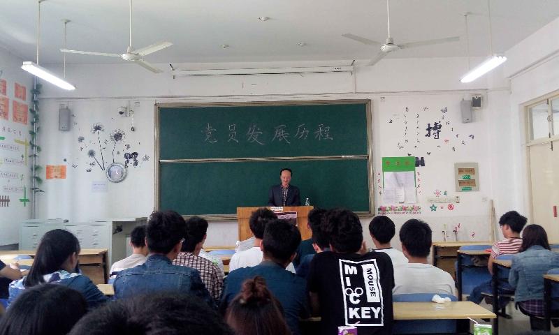 课堂上,孙书记首先向我们讲解了学生入党的相关规定,紧接着,他详细地解释了党员的发展历程。孙书记用流程图的方式清晰、简洁的讲述了同学们从递交入党申请书到发展成为一名正式党员历经的流程,让同学们更加深刻的认识到必须端正入党动机,切实落实党的章程,遵守党的纪律。