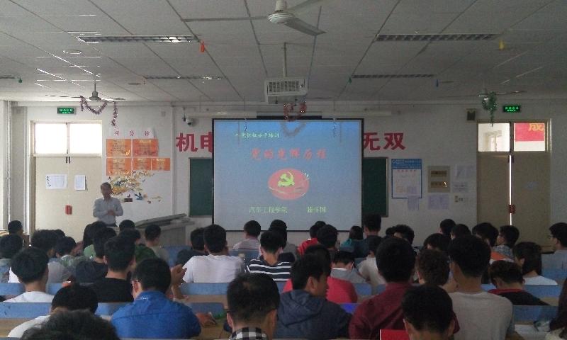 4月20日,我院与汽车工程学院,在1B302教室一起完成了第三节入党培训课。我们有幸邀请到汽车工程学院的滕怀国老师来为我们授课。