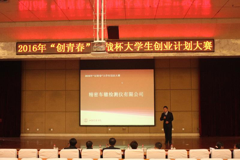 这次大赛中,我院“车辙检测设备有限公司”、“‘碧海蓝天’玻璃清洗机有限责任公司”、“自动图书管理机器人”、“西凉手作店”等项目的负责人依次上台进行答辩,他们从各自项目的优点、投资金额、应用范围及市场前景几个方面进行了详细的论述。到场学生仔细倾听,积极发掘各位参赛选手在答辩过程中的问题并给出了相应的建议。选手们对评委提出的犀利问题认真思考,做出满意答复,得到了评委的赞许和观众的阵阵掌声。