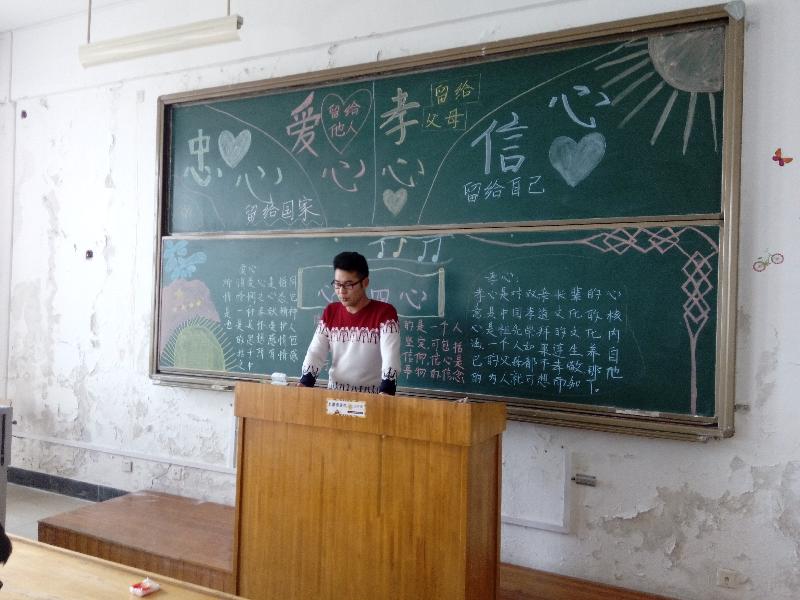 为深入推进社会主义核心价值观的宣传教育,全面加强大学生思想道德建设,我院于3月16日起在各班级开展了以“孝敬心,感恩心,责任心,同情心”为核心的“四心教育活动”。