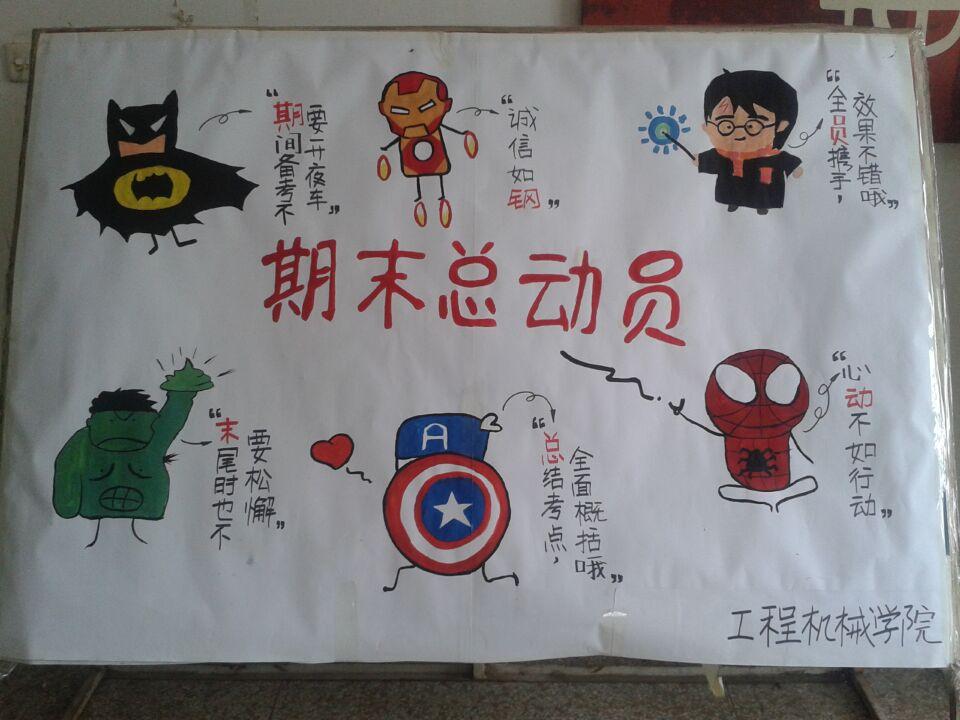 时针在不停刻的转动,伴随着盛夏的脚步,一学期一次的期末考试即将拉开序幕。在这次期末总动员系列活动中,我院通过制作宣传版、征集宣传标语等活动为广大同学们加油鼓劲。决心即力量,信心即成功。就让我们机械学子怀揣不断奋进的决心和勇气,去面对自己的未来学业,去完成自己一次次新的跨越。