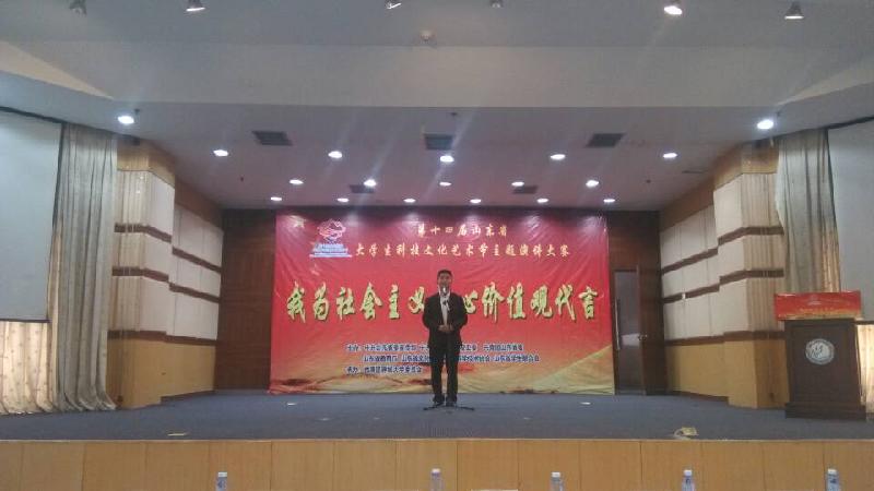 4月26日,第十四届山东省大学生“我为社会主义核心价值观代言”主题演讲大赛落下帷幕,我院参赛选手陈伟荣获三等奖。