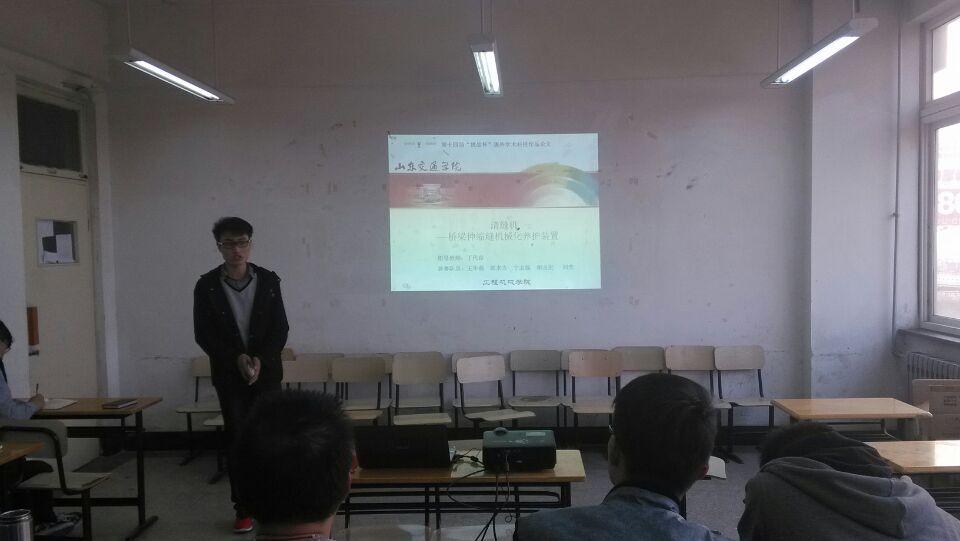 会上,“工厂流水线机器人码垛机”、“桥梁伸缩缝机械化养护装置”、“智能跟随车”等项目的负责人依次上台进行答辩,他们从各自作品的特性、组成、工作原理、应用范围及市场前景几个方面进行了详细的论述。到场学生仔细倾听,积极发掘各位参赛选手在答辩过程中的问题并给出了相应的建议。选手们认真思考,详细记录了同学们提出的点滴不足,力求在即将到来的校赛答辩中做到尽善尽美。