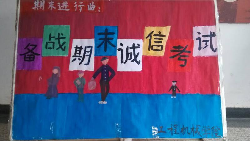 这次宣传活动,不仅是我院检查教学质量的一种主要手段,也是对我们学生进行总结性检查的主要形式。同时,我们这一学期的努力,只为在这一刻画上句点;我们这一学期的付出,只为在这一刻收获,我们这一学期的坚持,只为在这一刻完美。为获得这份收获,为成就这份完美,所以,我院学生在英语四、六级考试和期末考试时,倡导广大学子诚信应考,杜绝作弊。