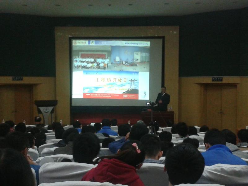在此次学术报告会中,西安交通大学王晶教授给在场老师和同学具体讲解了西安交通大学的“学生工程与实践基地”——工程坊成立的目的和发展过程。工程坊的建立是其对创新平台发展方向的探索,对学生的自主创新和综合能力提高有着重要的推动作用。整个报告过程中,到场师生认真倾听,积极思考总结,从中汲取了很多经验和方法。