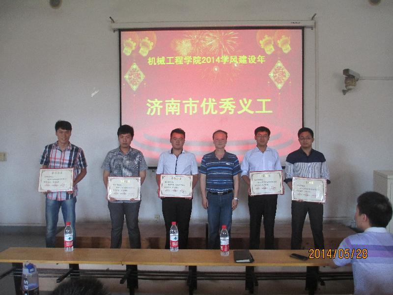 会上,首先孙书记依次为“国家奖学金”获得者宗明祥、刘中原、郭恩宏、李昊,“省政府奖学金”获得者李晶,“福建铁拓83奖学金”获得者张旭 、都国荣等六人,济南市优秀义工获得者巩树奇、于相磊等五人,2013年度大学生学术科技项目一等奖获得者张阳、张伟等五人 ,优秀学生助教获得者常张亮、武同东等八人,学风建设年文明教室获奖班级颁奖。紧接着又为我院2014年度学生助教颁发聘书。庄严而隆重的颁奖仪式激励着台下的每位学子。颁奖典礼后,孙书记发表讲话,他首先祝贺获奖班级和个人,鼓励他们再接再厉,随后介绍了我院学风建设最新进展及学生发展指导室的相关信息,最后对在座学子提出了殷切期望与美好的祝愿。