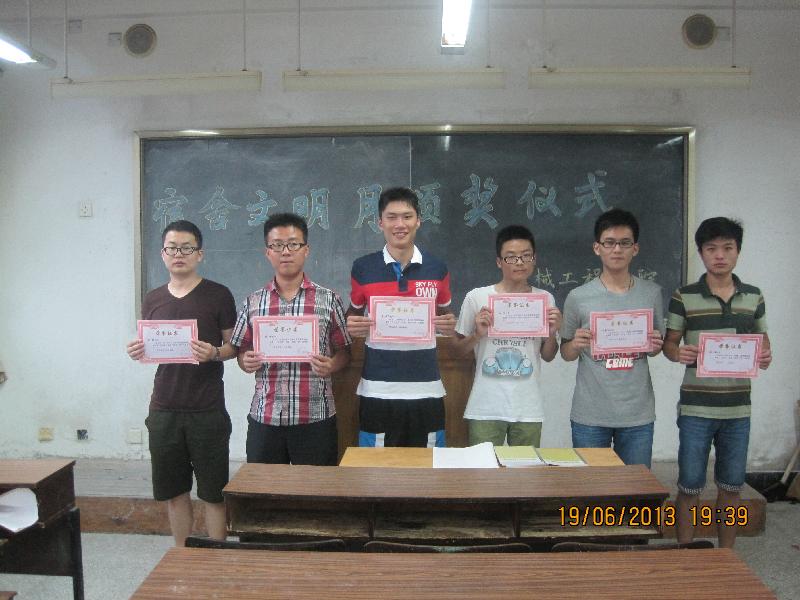 颁奖仪式上表彰了在宿舍文明月中表现优异的个人及集体,依次颁发了“标兵宿舍”、“优秀个人”、“模范干部”及“表现突出班集体”等奖项。