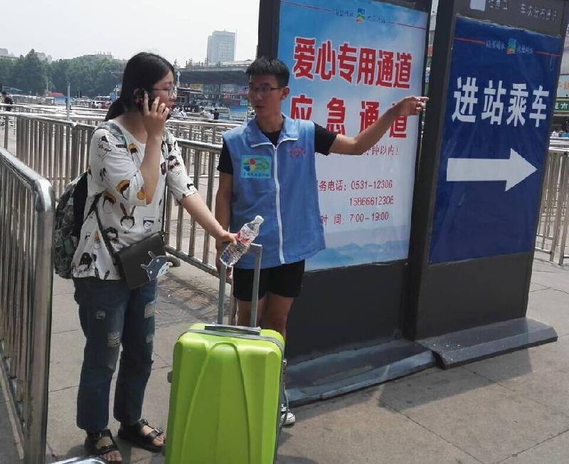 活动伊始,火车站工作人员对义工们进行详细的分工。为给大家创造一个良好的乘车环境,帮助更多需要帮助的人,义工们端正态度,认真的疏导进站口的乘客,帮助检票乘客熟悉流程,并搀扶老龄乘客乘坐火车……义工们的认真工作被工作人员及乘客看在眼里,并且表示了极高的赞誉,义工们积极向上的精神也感染了其他民众。