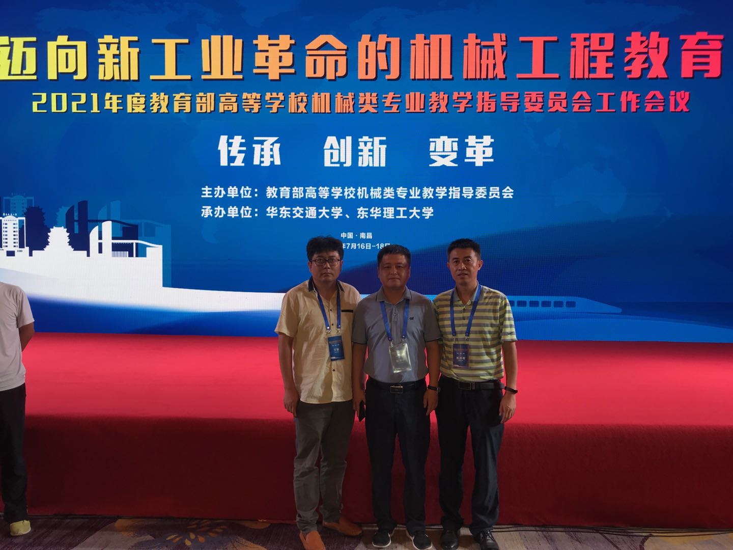7月17日至18日,2021年度教育部高等学校机械类专业教学指导委员会工作会议在南昌召开,学校党委委员、副院长张化祥带队,我院张东升院长、焦培刚副院长、机械制造系丁刚主任参会,并参加交流研讨。
