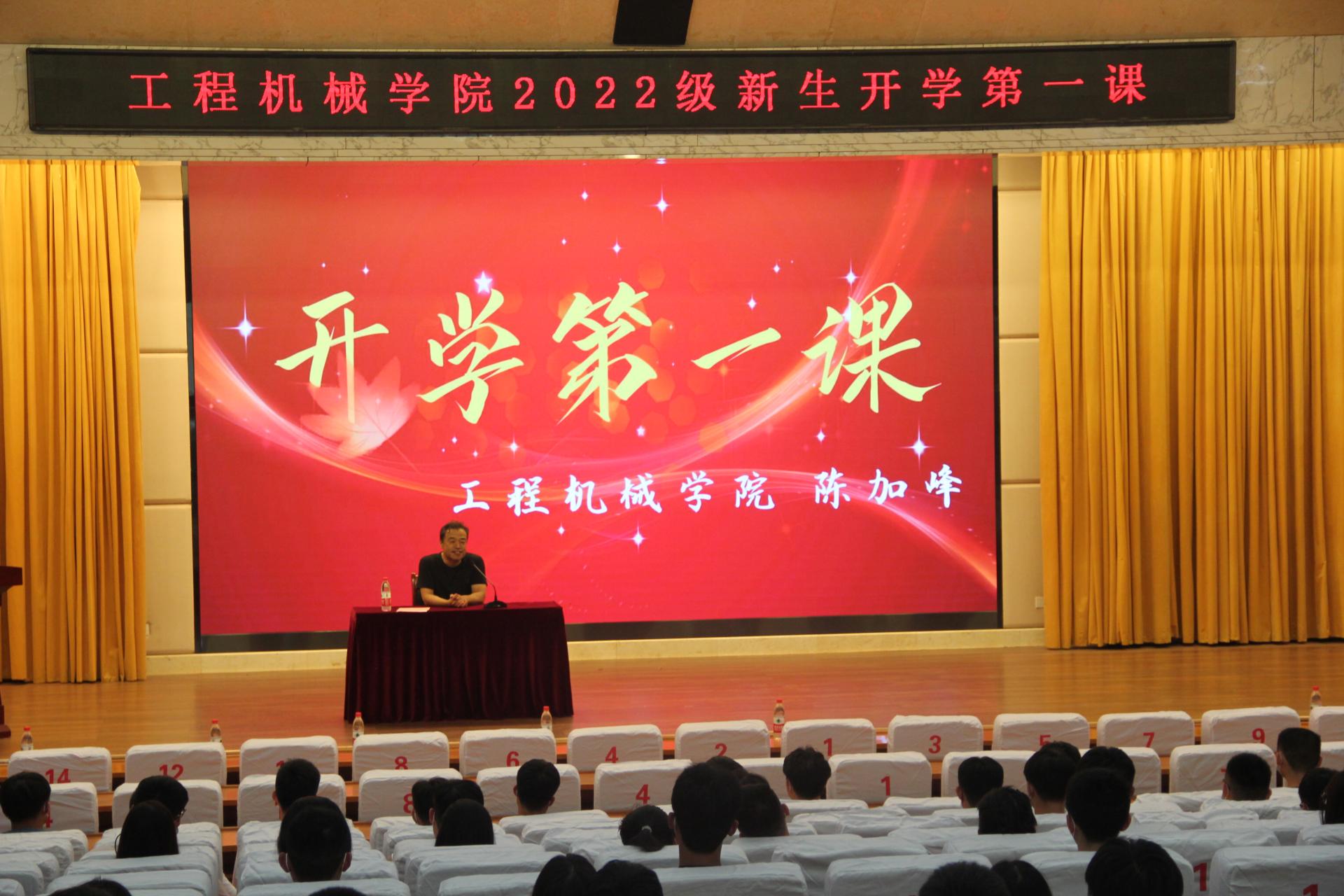 开学典礼后,学院党委书记陈加峰为同学们上了别开生面开学第一课。他从“交通、专业、学业、就业”这几个方面跟同学们进行了深入的交流,阐述了“工程机械”的历史、现状、发展趋势和应用前景,对学院和专业进行了介绍。最后,陈加峰为同学们解答了就业、考研、实习等方面的问题。