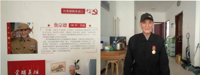此次拜访的抗战老兵名叫焦宗德,是参与抗美援朝战役的一名老兵。学生团队的到来让80多岁的焦爷爷格外激动,他展示了自己获得的各种勋章。在回忆当年的远赴朝鲜、保家卫国的时光时,眼里闪烁着尘封已久的骄傲和荣光。在国家危难时刻,15岁的他毅然决然地走上了保家卫国的道路。“我那个时候还是很优秀的呢。”