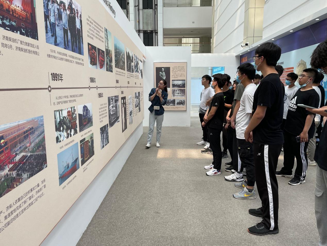 下午14时,参观队伍抵达中国石油集团济柴动力有限公司。在工作人员带领下,同学们依次参观了公司的生产车间和企业文化展厅,工作人员分别从壳类加工、轴类加工等各方面详细地介绍了机器的作用,同时就产品的生产流程、企业发展和企业文化等方面与同学深入交流。