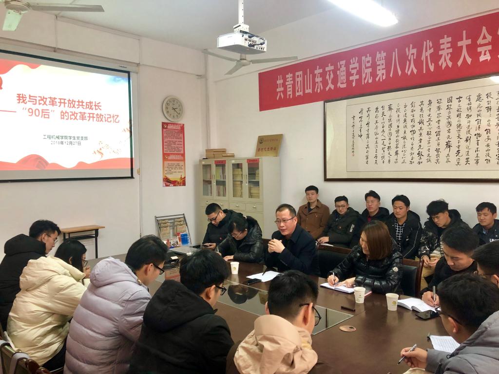 12月27日下午,学校党委委员、副院长李贞涛长清校区在1号教学楼党员活动室为我院学生党员讲授《形势与政策》课。课程以“我与改革开放共成长——‘90后’的改革开放记忆”为主题,我院分党委副书记李筱倩和各学生党支部书记一同聆听了本次课程。