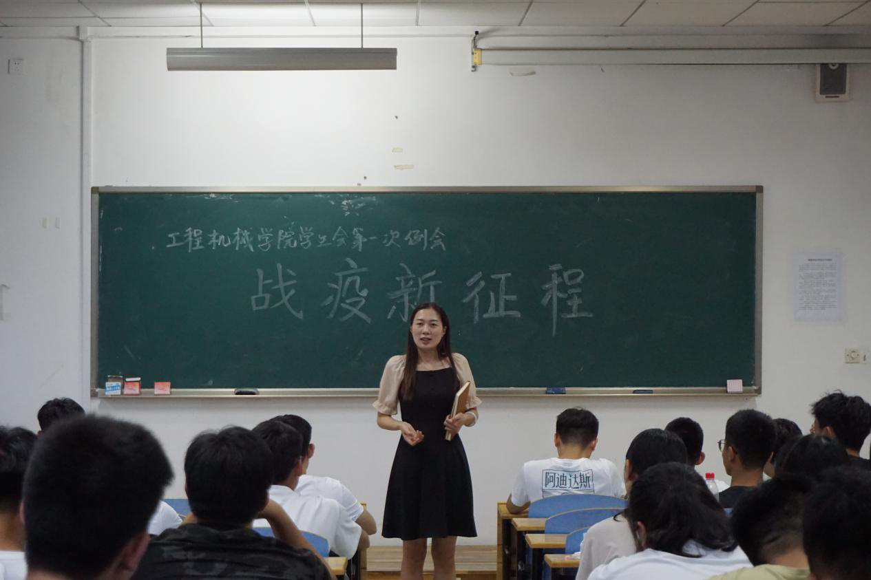 8月31日下午五点,我院于二号教学楼B座201教室召开了本学期学生会第一次例会,本次会议以“战疫新征程”为主题,2019届学生会主席孔惠民主持了此次会议。