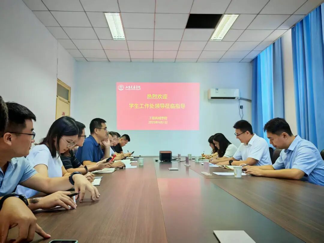 9月1日,山东交通学院学生工作处处长成钦、副处长屈展、杨丽娜等一行4人到工程机械学院开展学生工作专题调研。工程机械学院党委副书记邓涛成、工程机械学院学工办主任种灵子、工程机械学院全体辅导员出席座谈会。