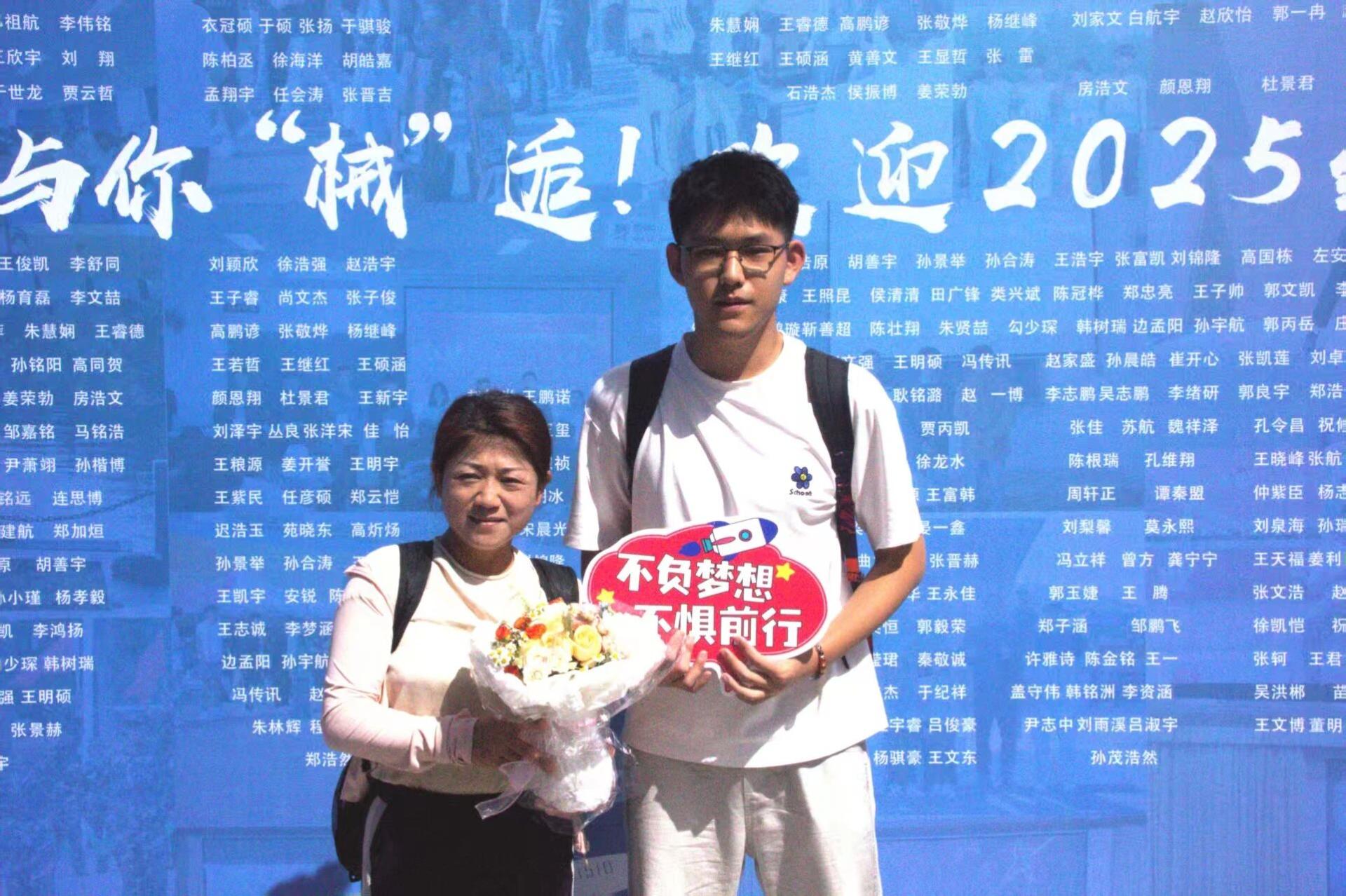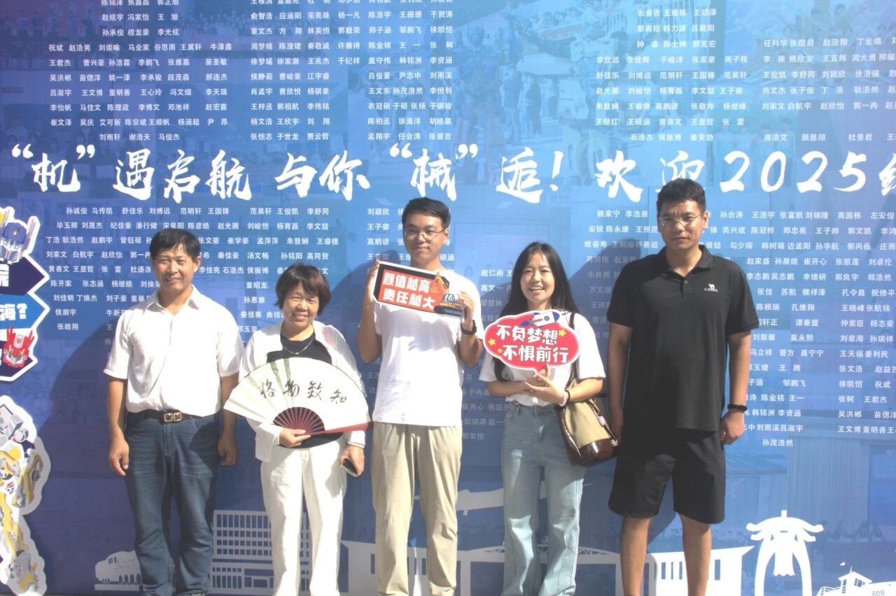 报到处旁,“机械”二字格外醒目——这面特殊的姓名墙,由464位2025级机械新生的名字拼接而成,每一笔都承载着新成员的归属感,许多新生与家人微笑合影,将成为机械大家庭一员的初印象,定格成珍贵的瞬间。
