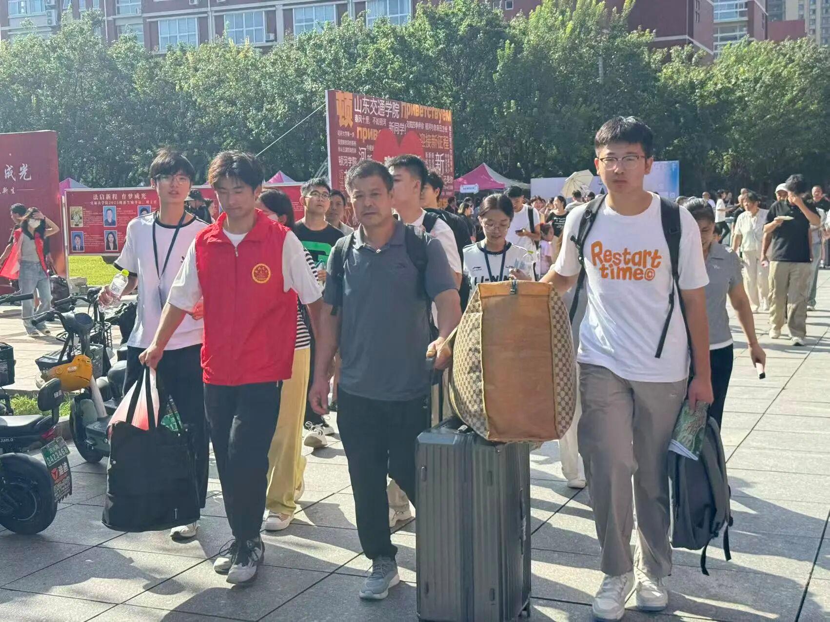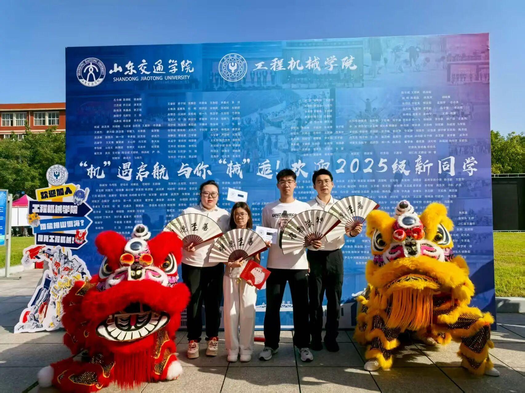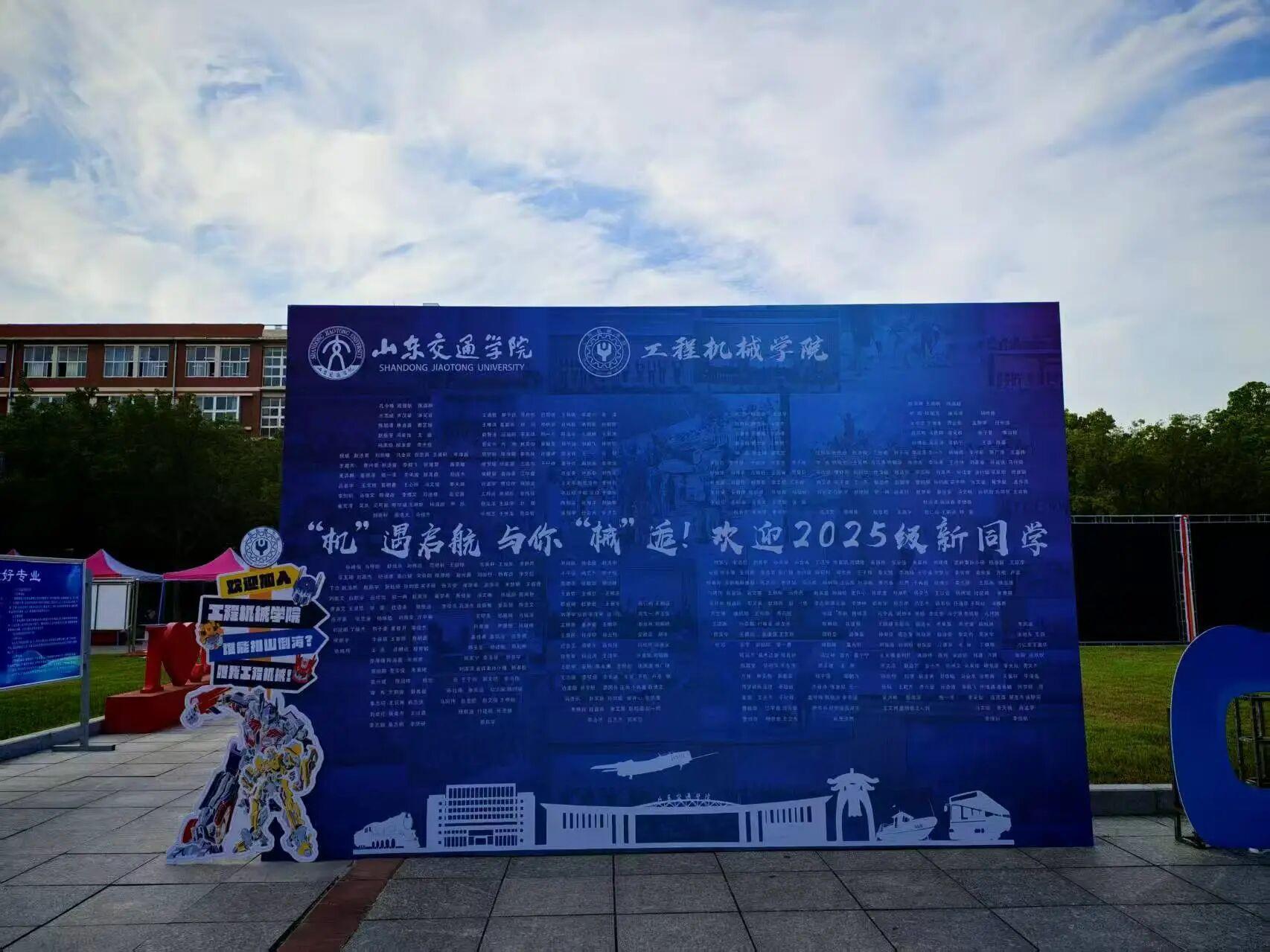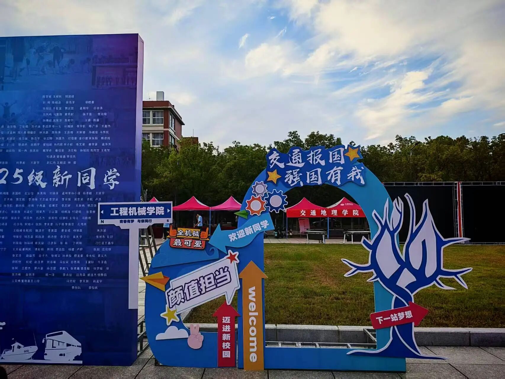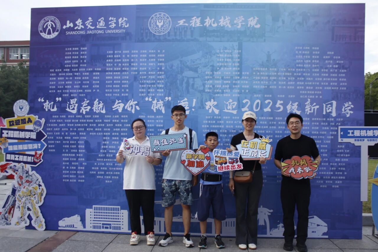 教学楼前,迎新条幅迎风舒展,新生们纷纷驻足,摆好姿势打卡留念。镜头定格的瞬间,不仅记录下初入校园的青涩与期待,更将工匠精神的信念与“交通报国 强国有我”的种子,悄然埋进了每一位机械学子的心中。