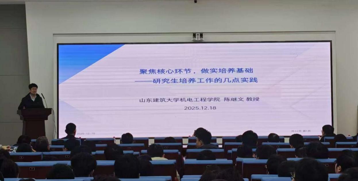 会议邀请山东建筑大学机电工程学院副院长陈继文教授作专题报告,他围绕《聚焦核心环节,做实培养基础一研究生培养工作的几点实践》分享了前沿理念与宝贵经验。