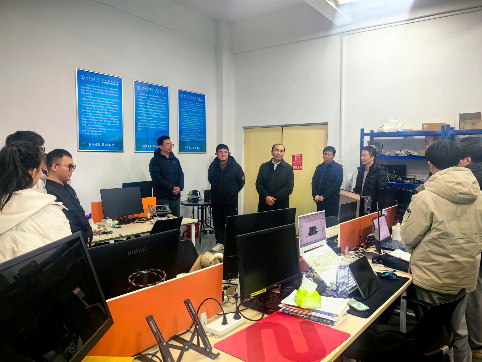 在实验室,孔伟金就科研进展、职业规划、实验室安全、生活保障等话题与留校研究生深入交谈,认真听取了同学们的科研学习汇报、未来发展规划,详细询问了课题研究、实验开展、留校生活情况等,并结合机械行业发展趋势、国家高端装备制造战略需求,为同学们的科研方向优化和长远发展路径给予了指导和建议。最后,孔伟金嘱咐同学们做好防寒保温并送上新春祝福,勉励同学们在新的一年里踔厉奋发、再创佳绩。