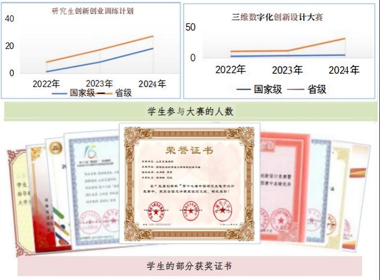 成果的研究与实践,促进山东交通学院机械工程学科迅速发展,围绕机械领域专业学位研究生培养中的实际问题,通过创新培养体系、优化教学过程和强化产教融合,取得了显著的推广应用效果,如图5。